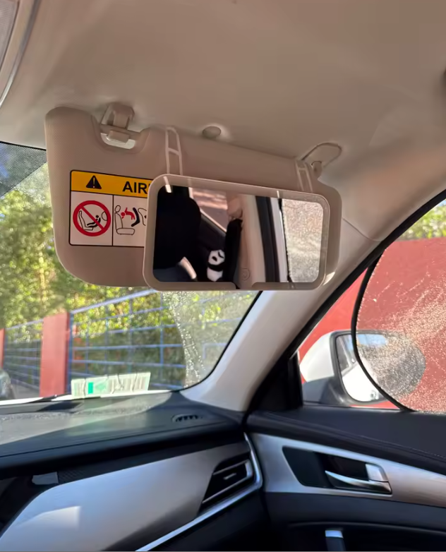 Las luces del interior del auto crean sombras incómodas que arruinan tu maquillaje. No puedes difuminar bien, no distingues los tonos y terminas saliendo con un resultado desigual. Maquillarte dentro del coche debería ser práctico, no una frustración constante.